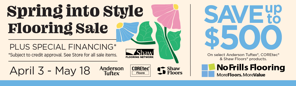 At No Frills you save every day on Carpet, Hardwood, Tile & Stone, Laminate and Vinyl. And at any given moment we receive limited inventory deals that you can take advantage of. Check out our Deals of the Moment!